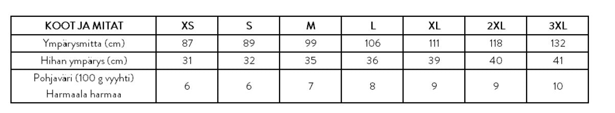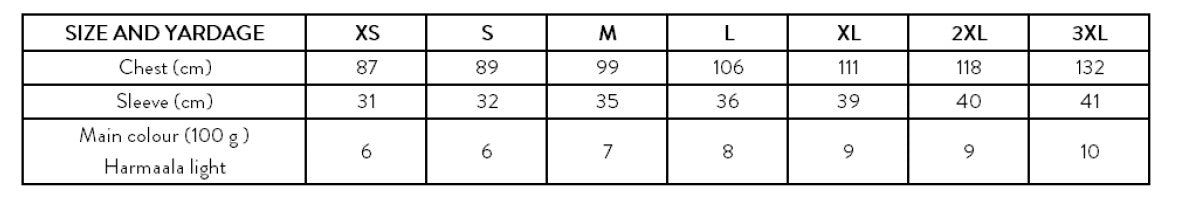 Yarn: Saimas Spinnery Harmaala grey, 200 m / 100 g according to the table below, or other yarn with similar flow.